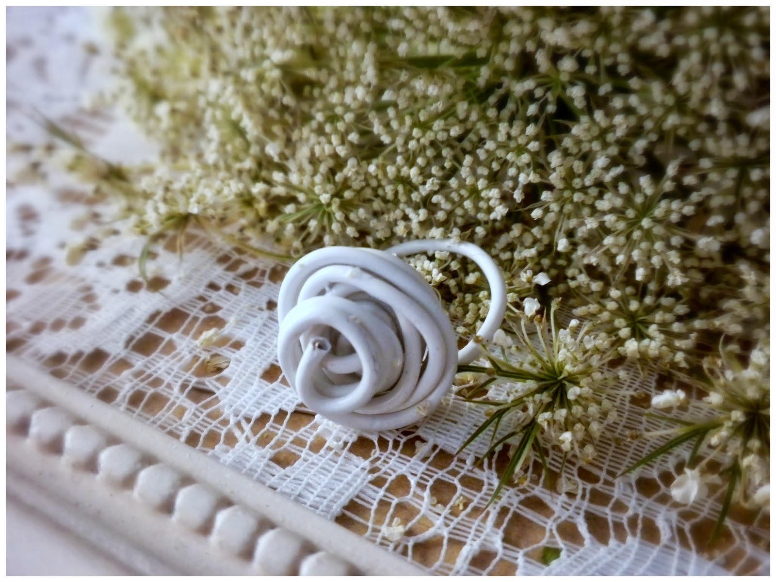 | Anello spirale,misura regolabile, in ottone forgiato a mano,per ciliegia una perla in corallo bambù. |